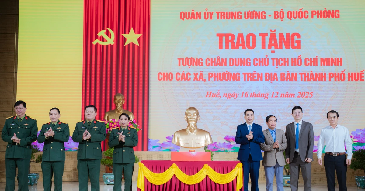 TPO - Thừa ủy quyền của Quân ủy Trung ương và Bộ Quốc phòng, Bộ Chỉ huy Quân sự TP. Huế đã trao tặng tượng chân dung Chủ tịch Hồ Chí Minh cho 40 phường, xã, góp phần bồi dưỡng lý tưởng cách mạng, giáo dục truyền thống và khơi dậy tinh thần học tập, làm theo gương Bác trên địa bàn toàn thành phố.