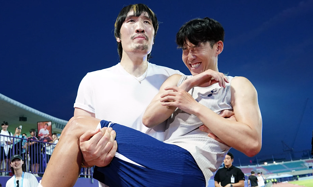 Choi nhấc bổng Son và ôm anh như một đứa trẻ, khiến thủ quân Tottenham cười bối rối và lấy tay che mặt ngượng ngùng. Các phóng viên và người hâm mộ tại sân thì hào hứng ghi lại khoảnh khắc đầy vui vẻ này.