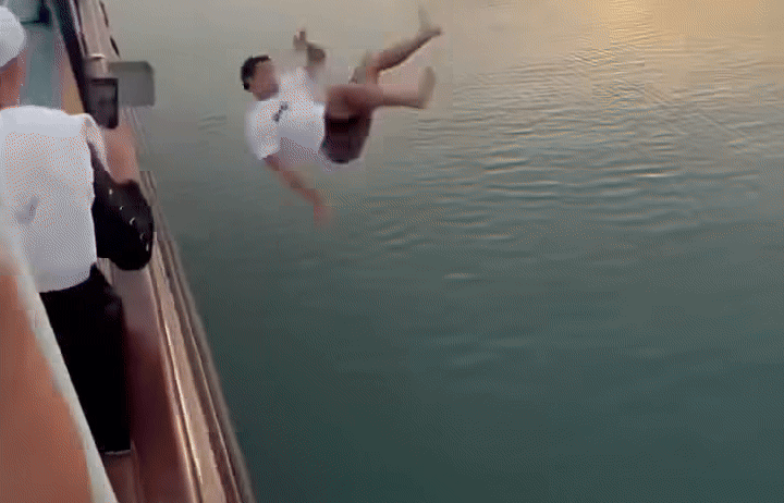 Người đàn ông chơi pickleball trên một du thuyền được cho là trên vịnh Hạ Long (tỉnh Quảng Ninh). Sau một cú đỡ bóng, người này bất ngờ lao ra khỏi mạn tàu, nhảy xuống nước. Đoạn video ghi lại sự việc nêu trên được đăng tải trên mạng xã hội ngày 15/4.
