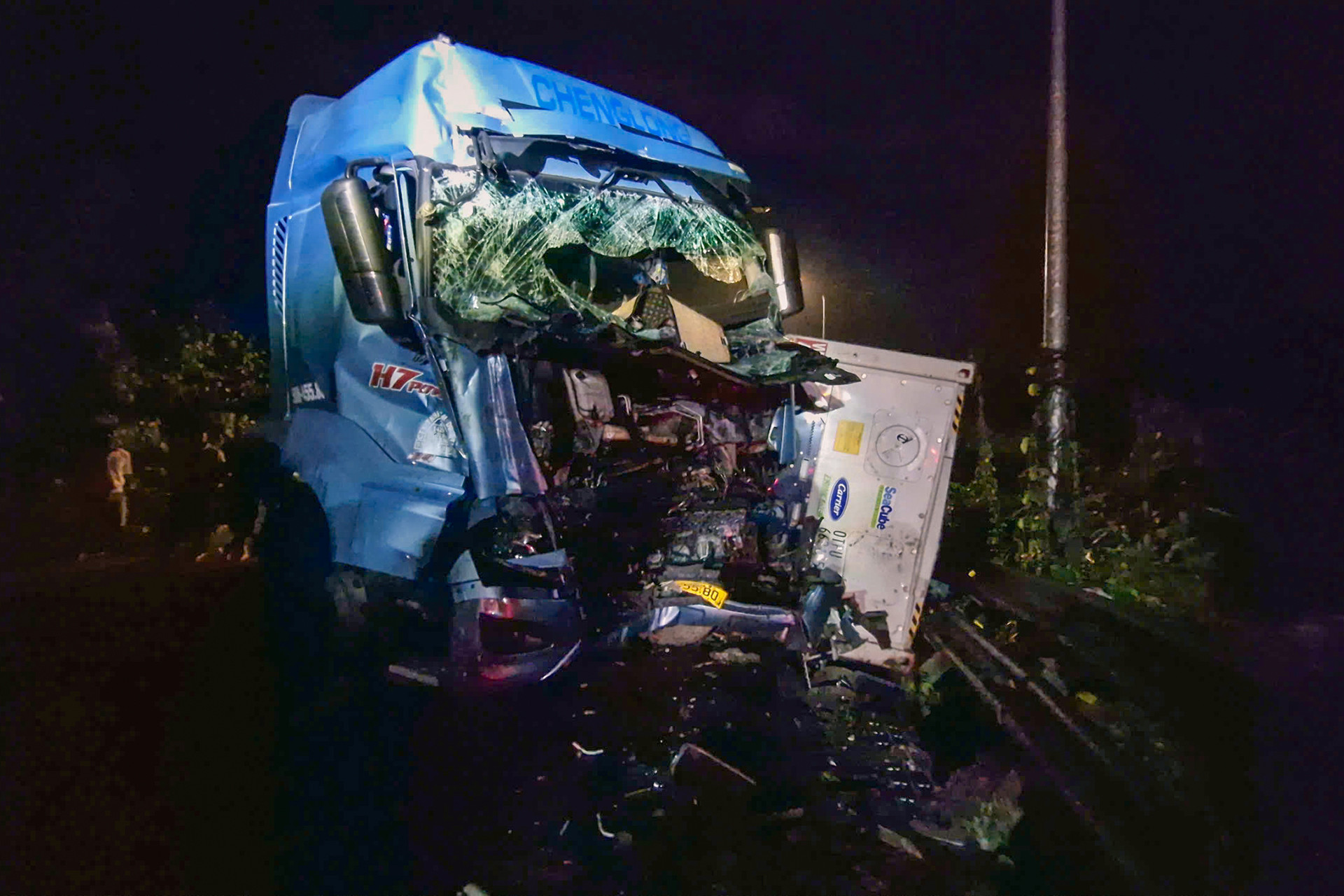 Trước đó, tối 4/11, tài xế Võ Văn T. điều khiển xe container biển số 50H-455.XX lưu thông trên Quốc lộ 20, hướng từ Đà Lạt (cũ) về TPHCM. Khi chạy trên đèo Bảo Lộc, đoạn qua xã Đạ Huoai 2, xe bất ngờ chao đảo rồi lấn sang làn đường ngược chiều, tông vào ô tô tải biển 49C-170.XX do tài xế Cao Hữu C. điều khiển đang lên đèo.