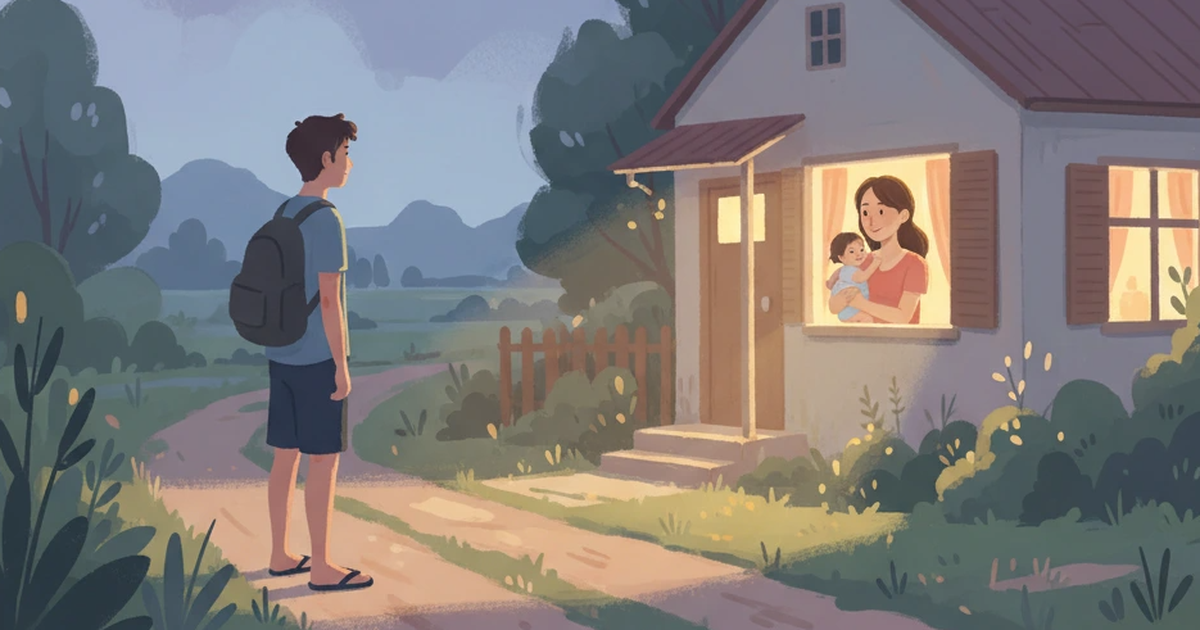 Qua ô cửa của chuyến xe về quê, dọc đường, nó nhìn thấy một gia đình nhỏ đèo nhau đi dạo. Đứa con nhỏ ngồi giữa, vòng tay ôm ngang bụng ba nhưng mặt đang cố ngoảnh ra sau để nói với mẹ điều gì đó. Rồi cả nhà cùng cười khanh khách. Nó nhìn thấy khói bốc lên từ bếp của một căn nhà nhỏ, nếp nhà ấy giống nhà nó ở quê, nhưng chắc ấm áp và đủ đầy hơn nhiều. Tự nhiên lòng nó chùng xuống khi nghĩ đến dì, nhiều năm rồi, kể từ ngày ba mất, dì vẫn ở vậy nuôi em, và đợi nó trở về.